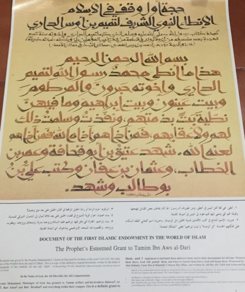 Sekarang, bayangkan apa yang terjadi 14 abad kemudian. Al-Khalil adalah kota dengan Masjid Ibrahimi, tempat makam Nabi Ibrahim. Ratusan ribu peziarah datang setiap tahun. Dan siapa yang menyambut mereka? Keturunan Tamim ad-Dari masih tinggal di sana, memegang dokumen asli tulisan Nabi yang diwariskan turun-temurun. Mereka tidak menjual tanah itu, tidak menggadaikannya, tidak membaginya jadi kavling komersial. Mereka menjalankan amanah wakaf: dari hasil tanah itu, mereka mendirikan rumah tamu abadi (al-Dhiyafah) yang menyediakan makanan gratis bagi siapa pun yang singgah.