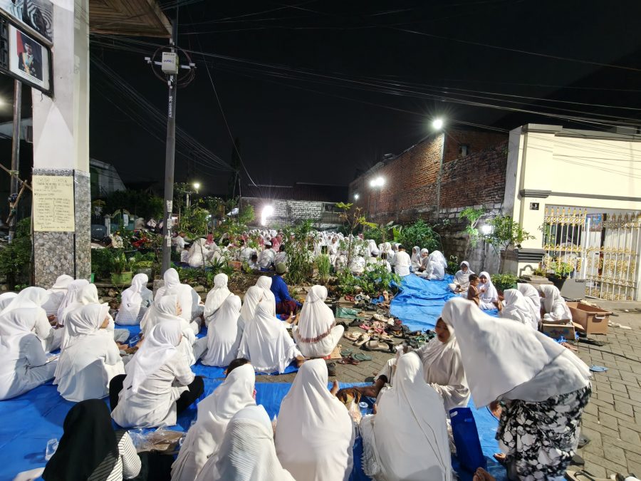 Acara santunan diawali setelah shalat Isya’ berjamaah dengan khataman Al-Qur’an, yang dibawakan oleh para santri, jamaah, dan anak-anak yatim sendiri. Suara-suara bacaan Al-Qur’an yang menggema memenuhi ruangan memberikan suasana yang khusyuk dan menggetarkan hati. Setelah khataman, jamaah bersama-sama melantunkan sholawat Nabi, menambah nuansa damai dan penuh cinta dalam majelis.